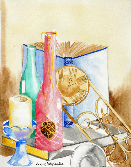 "Reading by Candlelight" 10" X 15" Watercolor on paper 2017